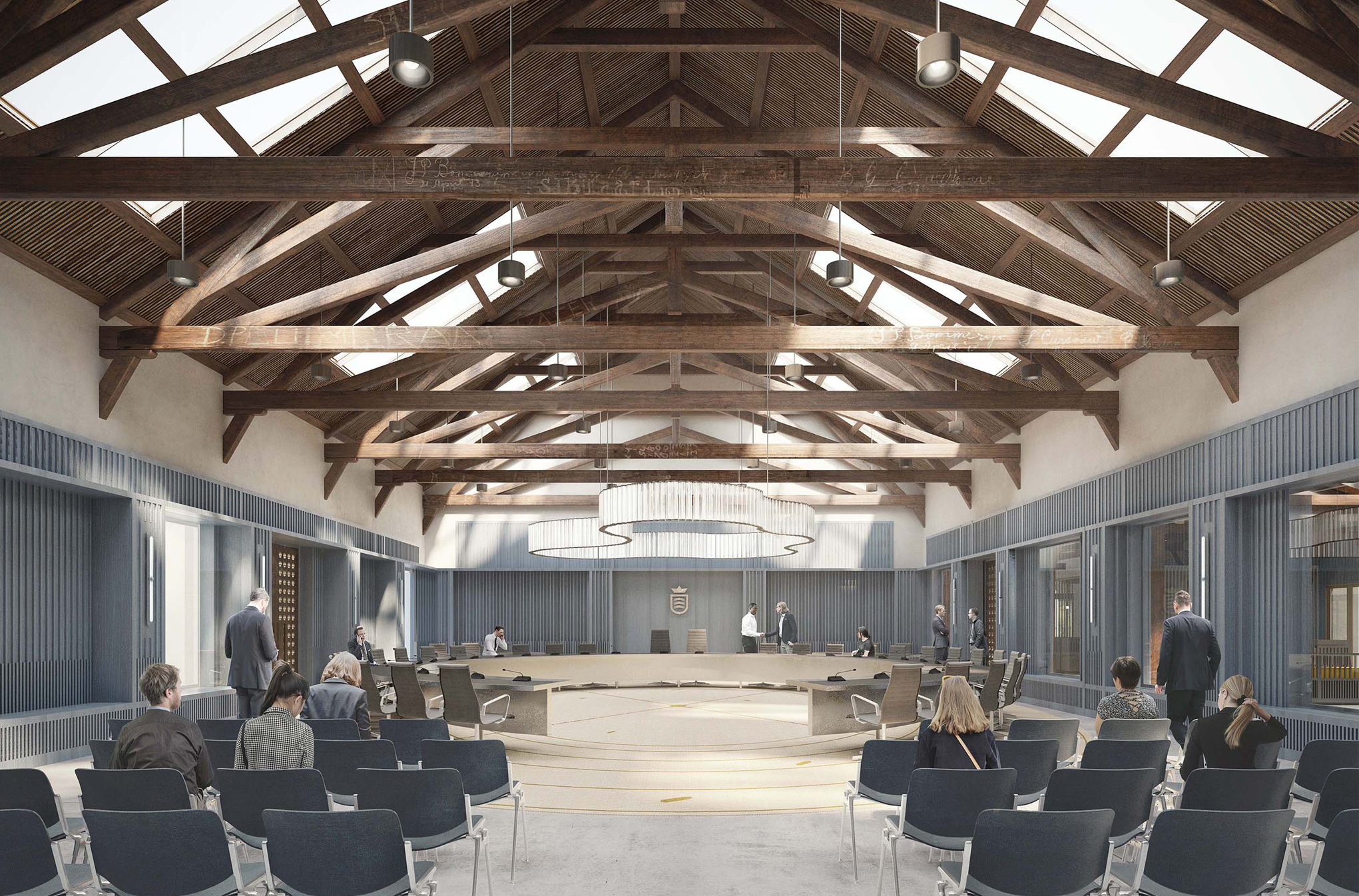 Het stadhuis wordt opgedeeld in twee gebouwen, beide met verschillende functies.